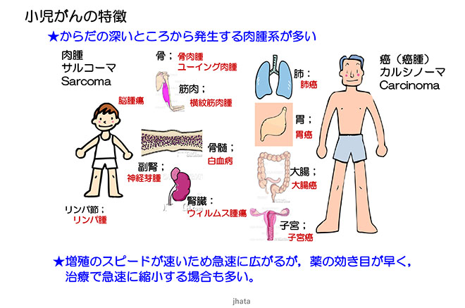 小児がんは体の深い場所から発生する肉腫に似たがんが多いのです。