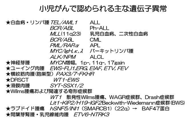 成人のがんを含めてその発生には何らかの原因による遺伝子異常が関連することはよく知られた事実である。小児がんでは、その発生に分子遺伝学的要因がさらに顕著である。